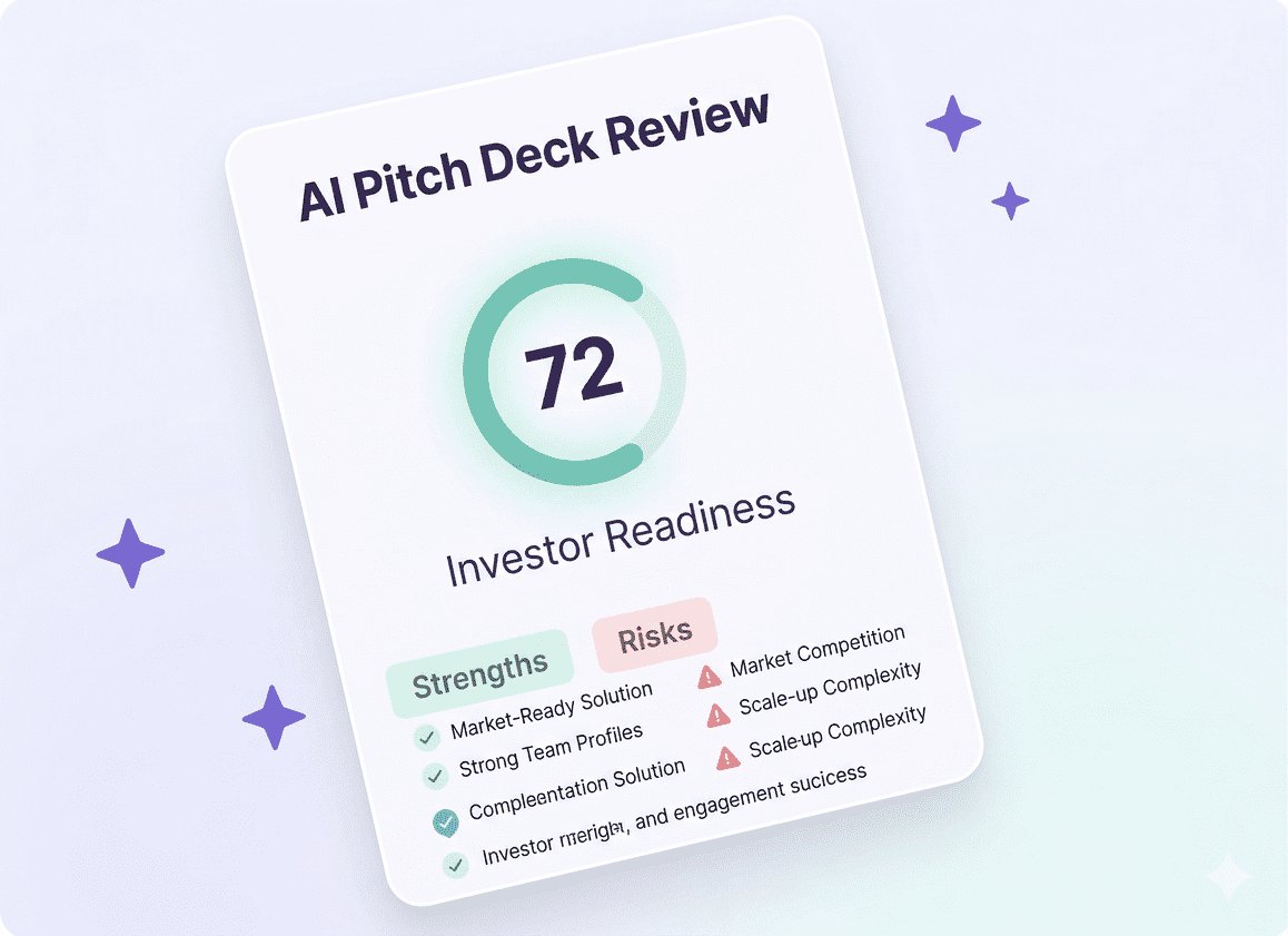 Get your AI-powered pitch deck analysis and investor readinedd score in minutes – free.